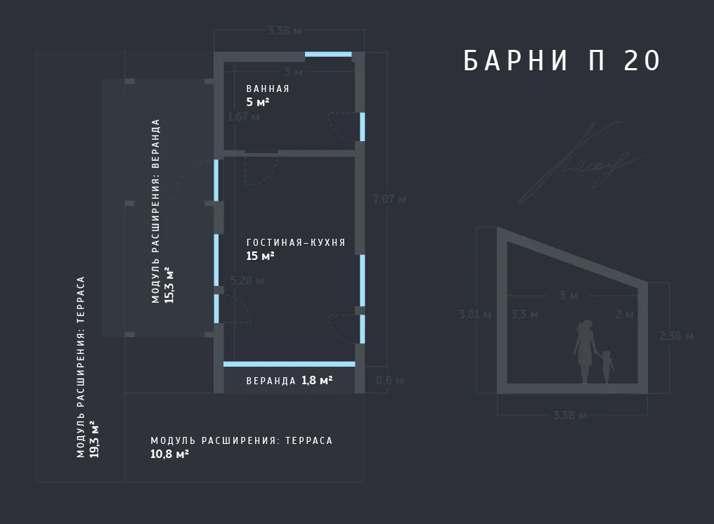 В результате у вас получится дом площадь 40 м². Вот как он будет выглядеть: Барни П+Л 40 ↗