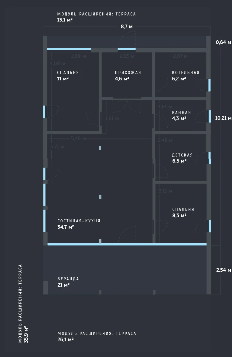 Не все семьи могут разово найти деньги на закрытый контур дома. Мой проект рассчитан на постепенную сборку, в реальности только так и могут собрать дом большинство семей.